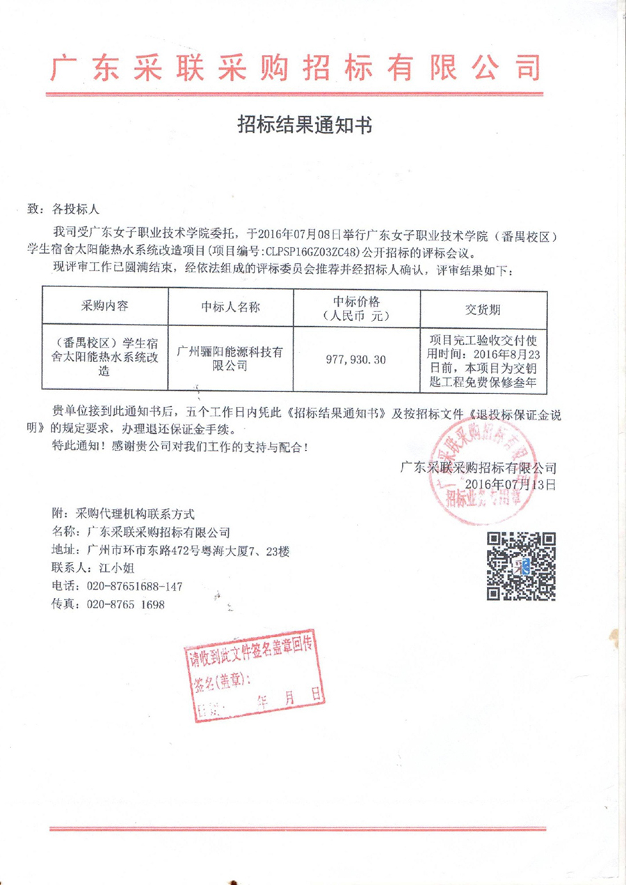 廣東女子職業(yè)技術(shù)學(xué)院學(xué)生宿舍太陽能熱水系統(tǒng)改造項目